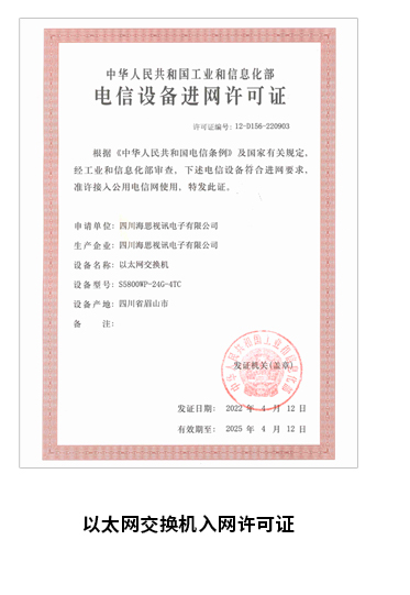 以太网交换机入网许可证